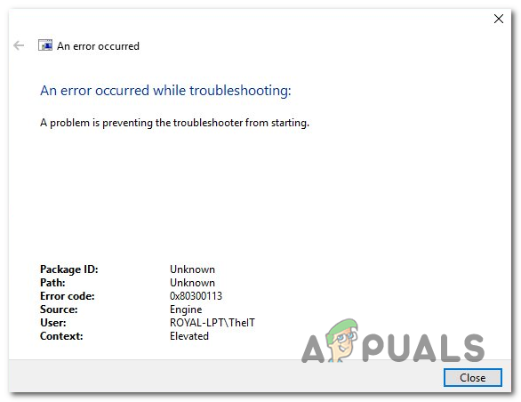 What’s causing the Troubleshooter Error Code 0x80300113?