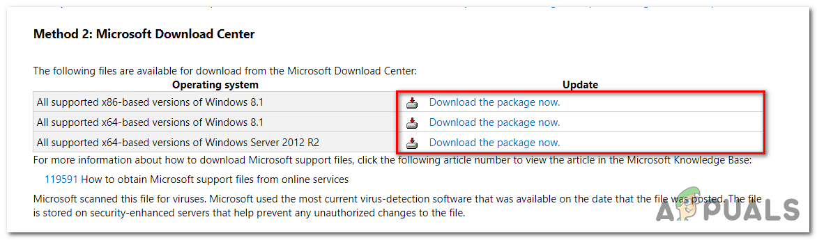 - Missing Updates from Windows 8.1 – On Windows 8.1, the most common occurrence that will produce this error is a situation where your Windows build is missing two stack updates that the game needs in order to run without issues (KB3173424 and KB3172614). If this scenario is applicable, you should be able to fix the problem by installing the two updates manually and restarting your computer.