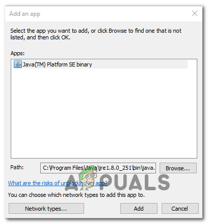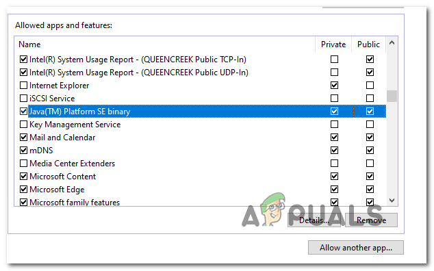 Allowing the Java Environment inside Windows Firewall - Once the Java environment is successfully whitelisted, launch Minecraft once again and see if the problem is now resolved.