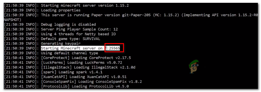 If this scenario is applicable, you should be able to fix the problem by opening up the startup script and fetching the real port of the Minecraft server, then using the Direct Connect option to connect using the correct port. A lot of affected users have confirmed that this operation was the only thing that allowed them to fix the problem.