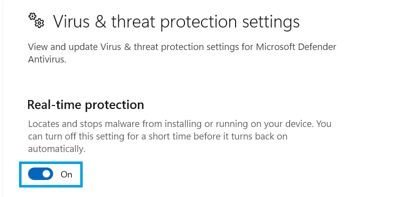 - Turn off Real-time protection.