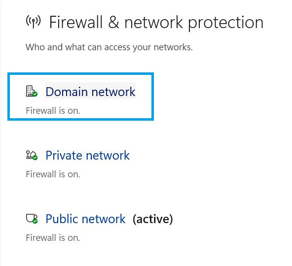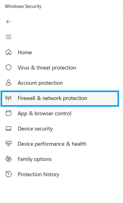 - Go back to Windows Security and open Firewall & network protection.