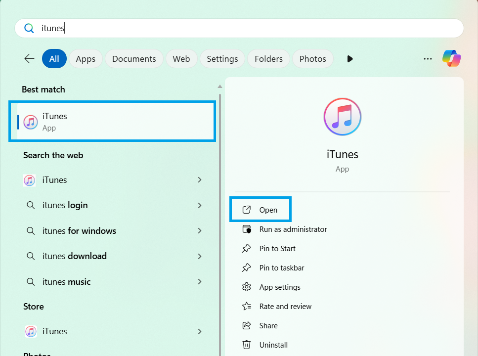 - Open iTunes.