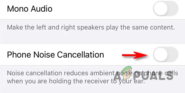 Navigating to Accessibility Settings - There, disable noise cancellation by toggling the Phone Noise Cancellation slider provided.