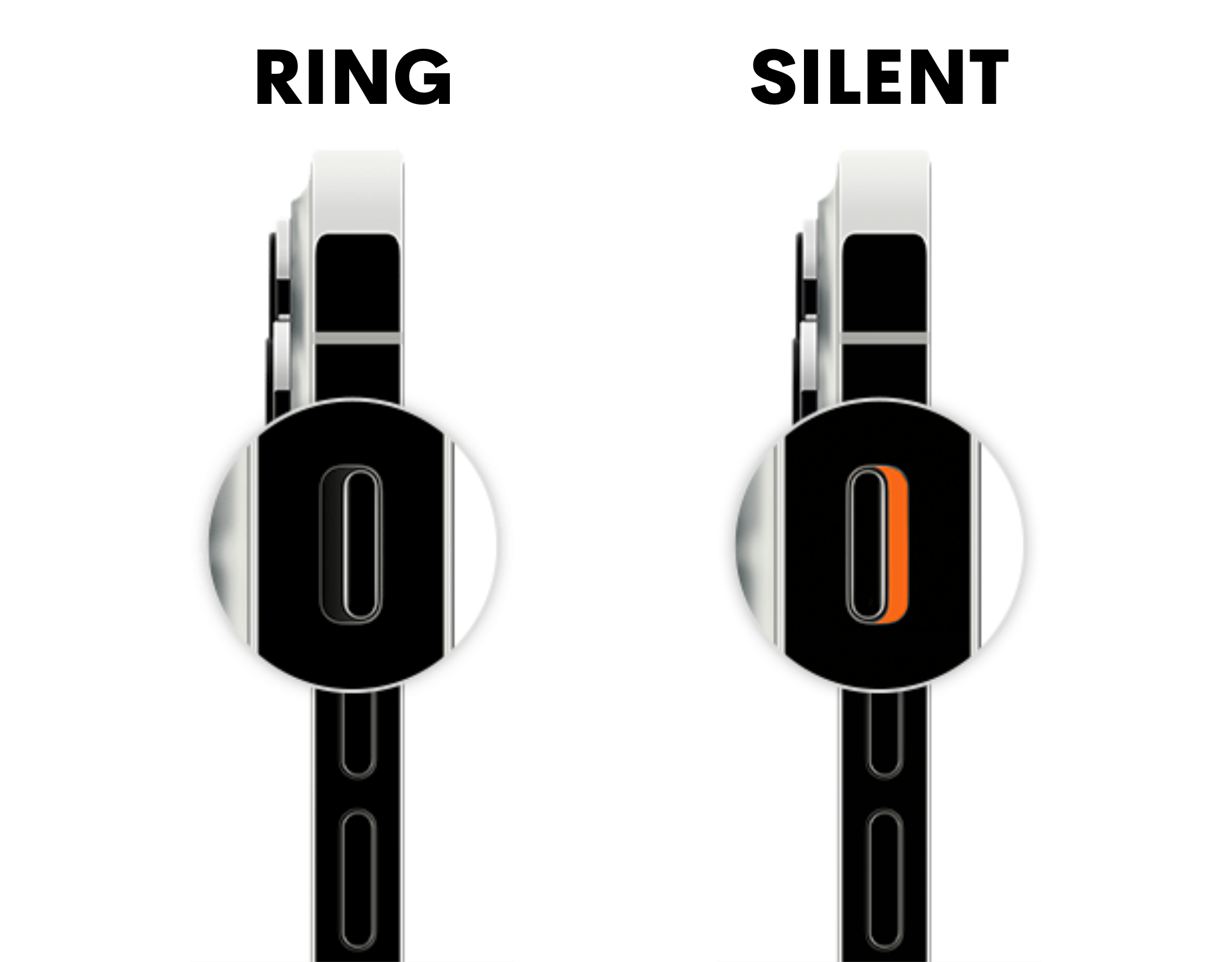 The easiest way to check if your iPhone is in silent mode is to examine the side switch. This is located above the volume buttons on the top-left of your phone. If the switch is pushed down to be closer to the back of the iPhone, this means it is in silent mode and hence won’t ring for any calls or text messages. A thin orange line can also be seen above the slider to indicate this.