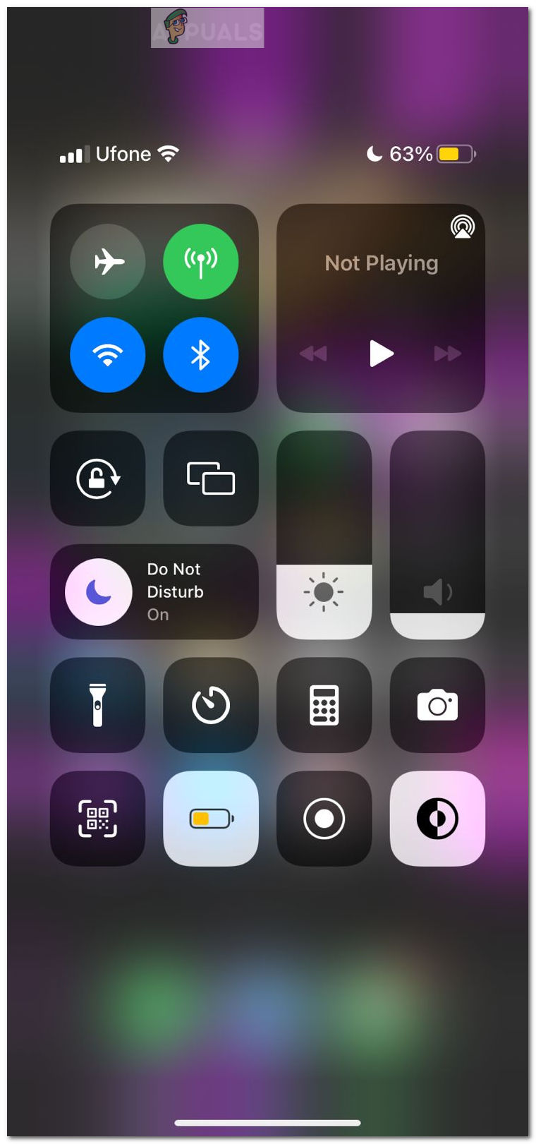 If Do Not Disturb mode is enabled, the crescent will be highlighted in purple. To bring your iPhone out of this state, simply tap on the crescent again until it is transparent.
