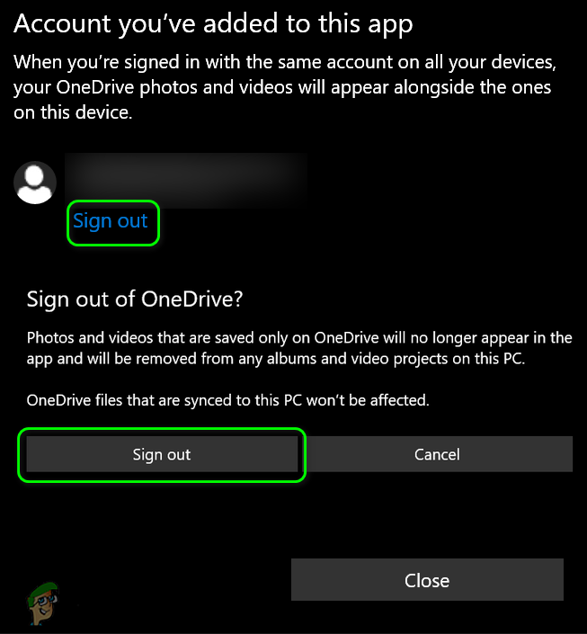 Open Your User Account in Microsoft Photos - Now, in the account window, click on Sign Out and then confirm to sign out of the account.