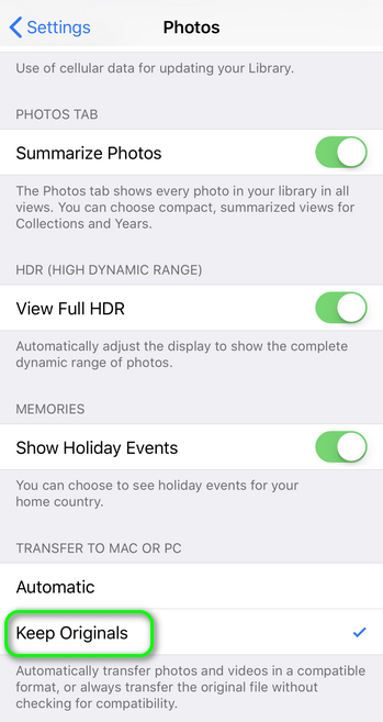 Solution 8: Enable Keep Originals in the iPhone Settings