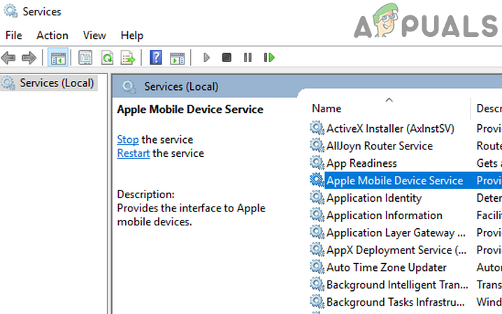 You may encounter the error at hand if the Apple Mobile Data service is stuck in operation. In this context, changing its startup type to Automatic & restarting the service may solve the problem.
