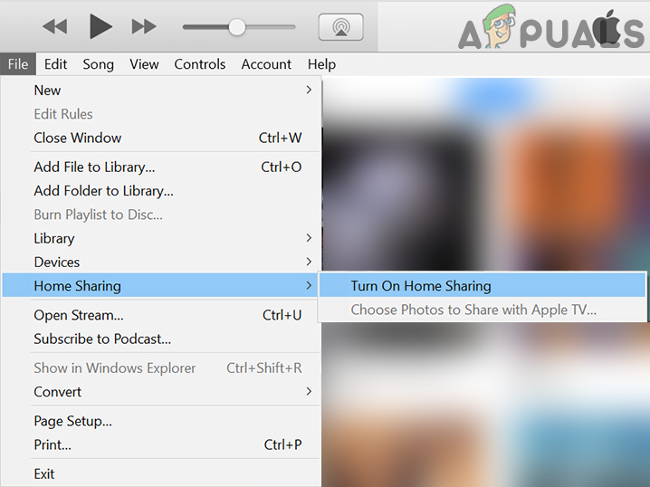 - Now choose Home Sharing & then select Turn on Home Sharing.
