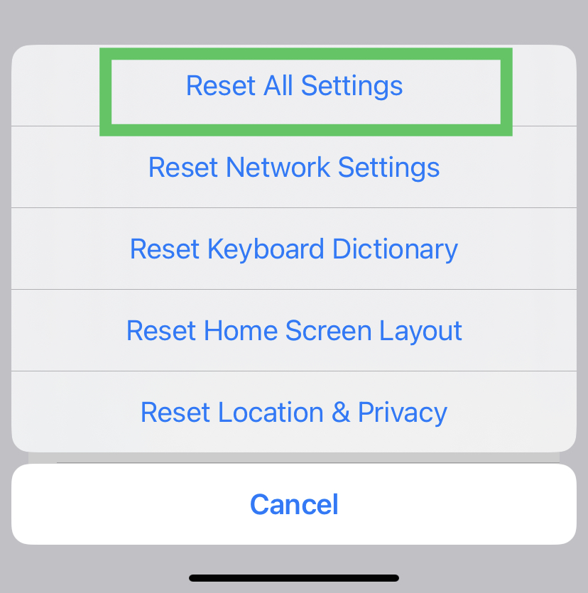 If none of the above methods works, you can attempt resetting all your settings before we move on to factory resetting your entire iPhone. Do not forget to note down/back up the info like Wi-Fi credentials that you will require later.