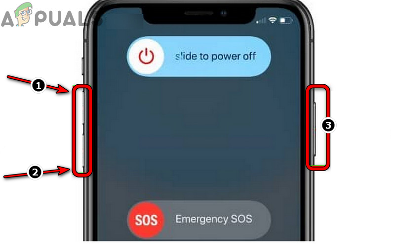 - Then press and hold the iPhone’s power (or side button). Do not release the button when iPhone’s power menu is shown.