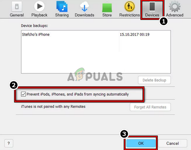 Open iTunes Preferences on Windows - Then head to the Devices tab and tick the checkbox of Prevent iPods, iPhones, and iPads from Syncing Automatically. This is essential; otherwise, the PC may overwrite your iPhone/iPad’s internal storage.