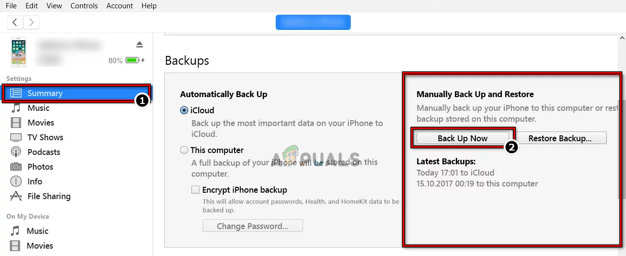 Manually Backup Your iPhone Through the iTunes - Now, wait till the process completes. This may take time, depending on the size of the backup.