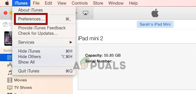 - Then, on Mac’s menu bar, expand the iTunes menu and select Preferences.