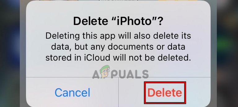 Delete the iPhoto App on the iPhone or iPad - Then select Delete App, and afterward, confirm to delete the app.