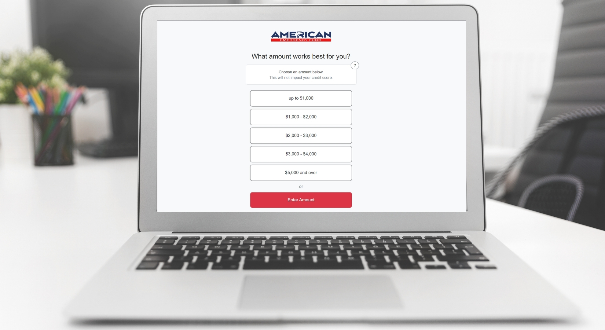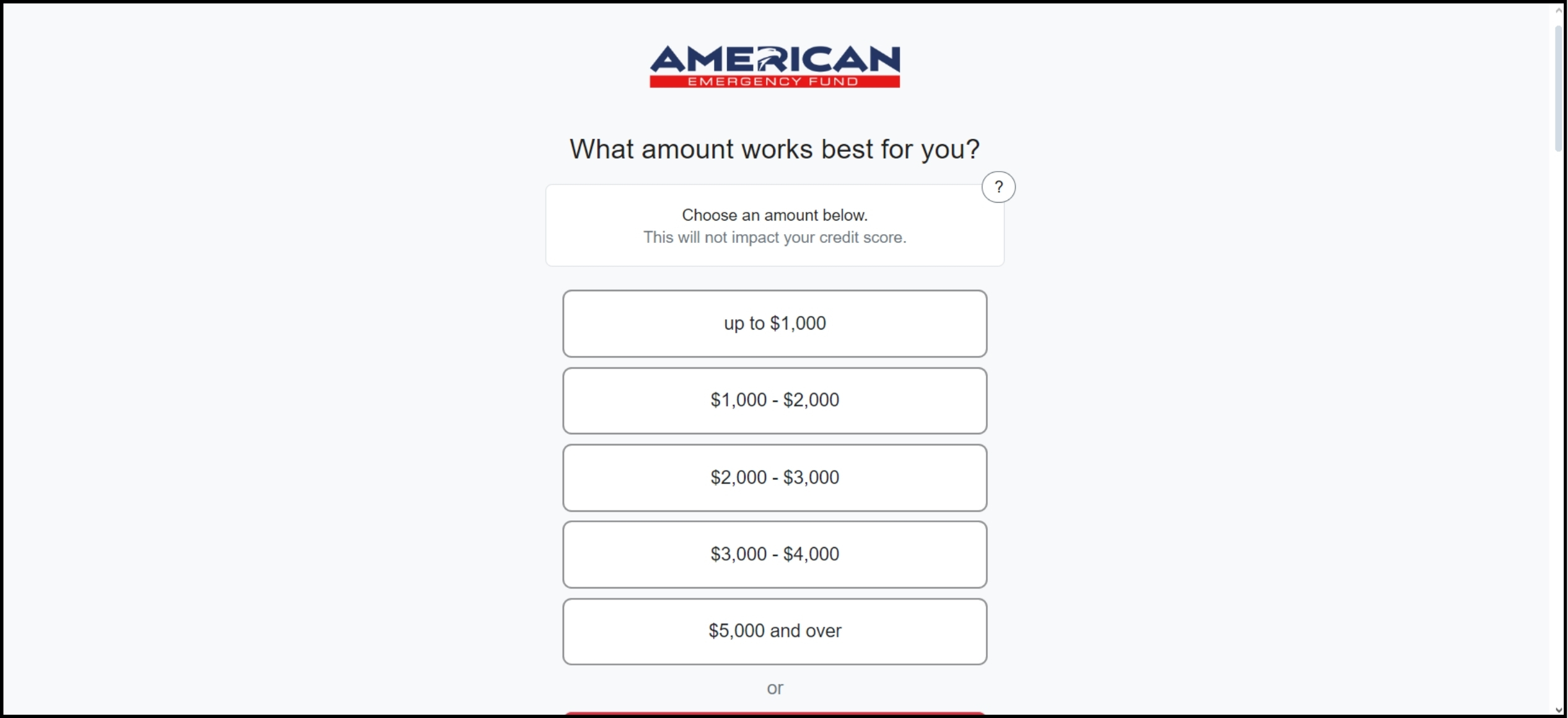 First, visit the American Emergency Fund website and select the loan amount that best fits your needs. Decide on the amount that will be most beneficial for you.