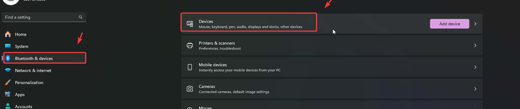 - Go to Bluetooth & Devices > Devices.