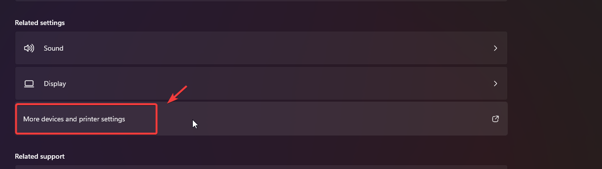 - Scroll down to the bottom and click More Devices and Printer settings.