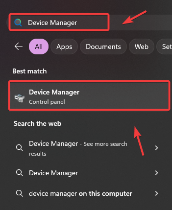 - Type Device Manager in the Start Menu.