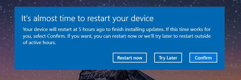 - “It’s almost time to restart your device”