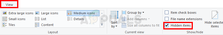 Accessing the ProgramData folder - Once you’re inside the ProgramData folder ensure that Hidden items option is enabled. To do this, click on the View option from the ribbon bar at the top, then check the box associated with Hidden Items. After you do this, every item that was previously hidden will become visible.