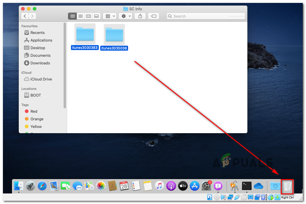 Navigating to the SC Info folder on macOS - Once you’re inside the SC Info folder, select everything inside and drag the entire contents to the trash box.