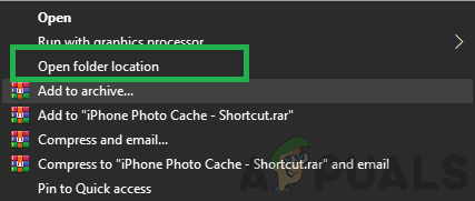 Selecting the “Open Folder Location” option - Backout of the folder and select it.