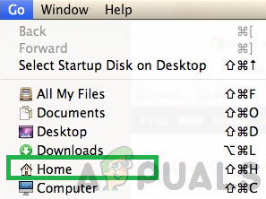 - Click on the Finder menu, click on “Go” and select “Home”.