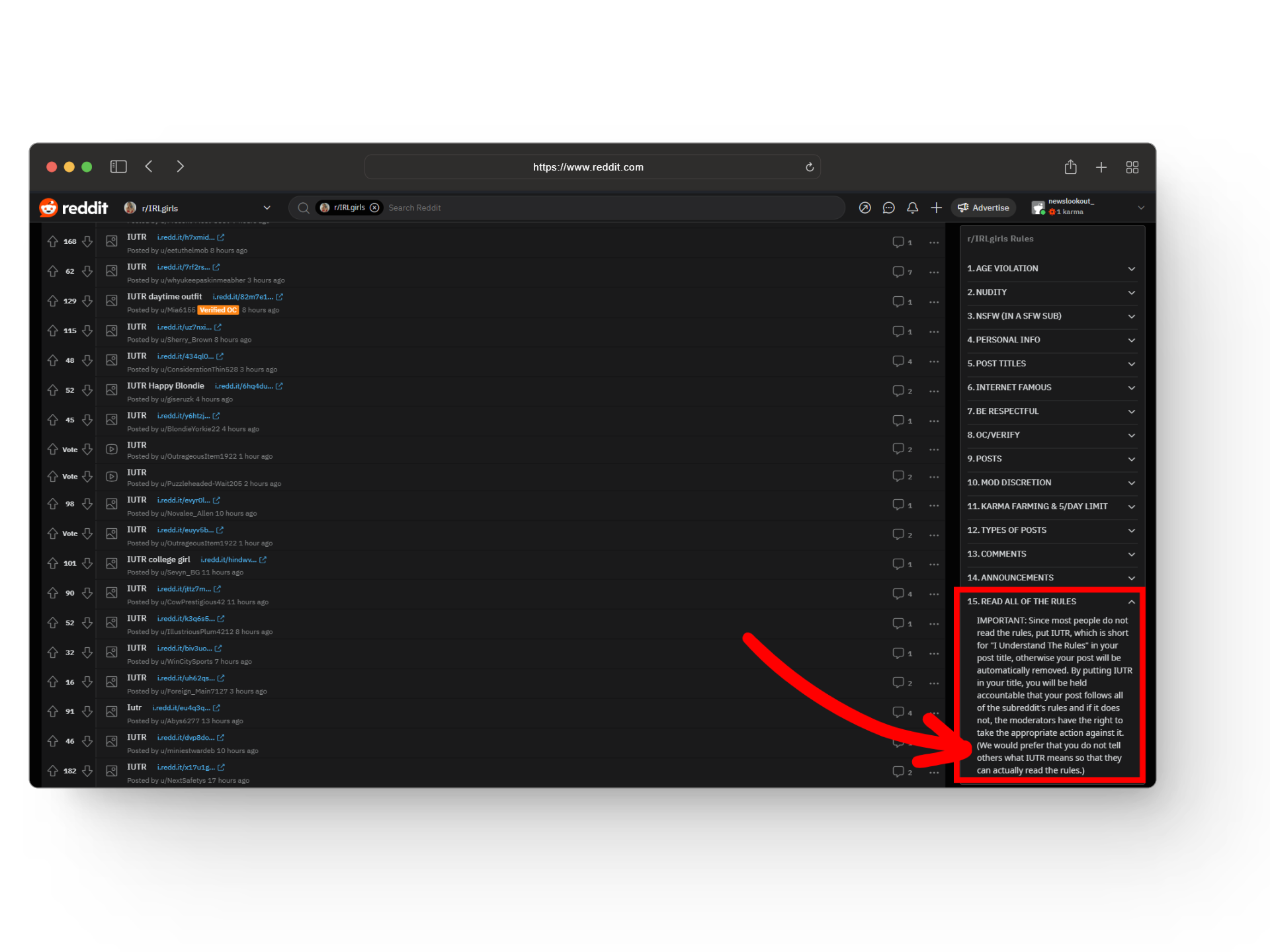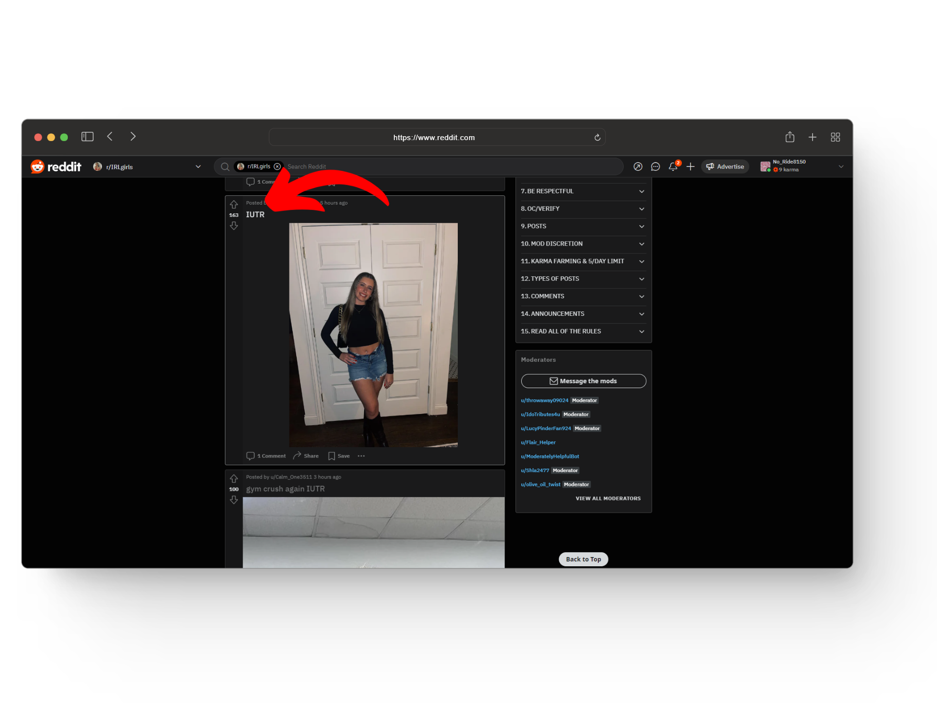 If you want to use IUTR, you’ll first need to join the IRLgirls subreddit, as it’s primarily used there. Then, take a moment to read the rules and regulations thoroughly to ensure your post complies with them. Finally, add IUTR in your post titles, and moderators will automatically approve your submission.