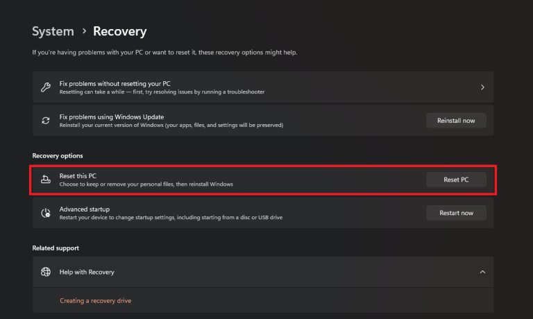 You have the option to retain your personal data and just reinstall the core system files. Likewise, you can go for a complete reset. We recommend you completely reset your Windows to prevent any unforeseen errors.