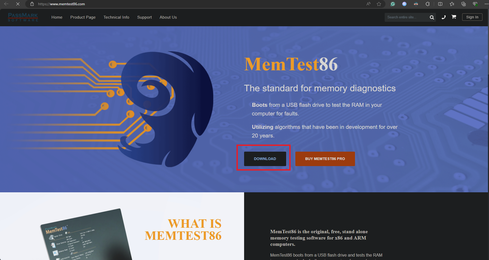 - Visit the MemTest86 link by searching the term on Google or by using this link, verify the URL; “https://www.memtest86.com“.