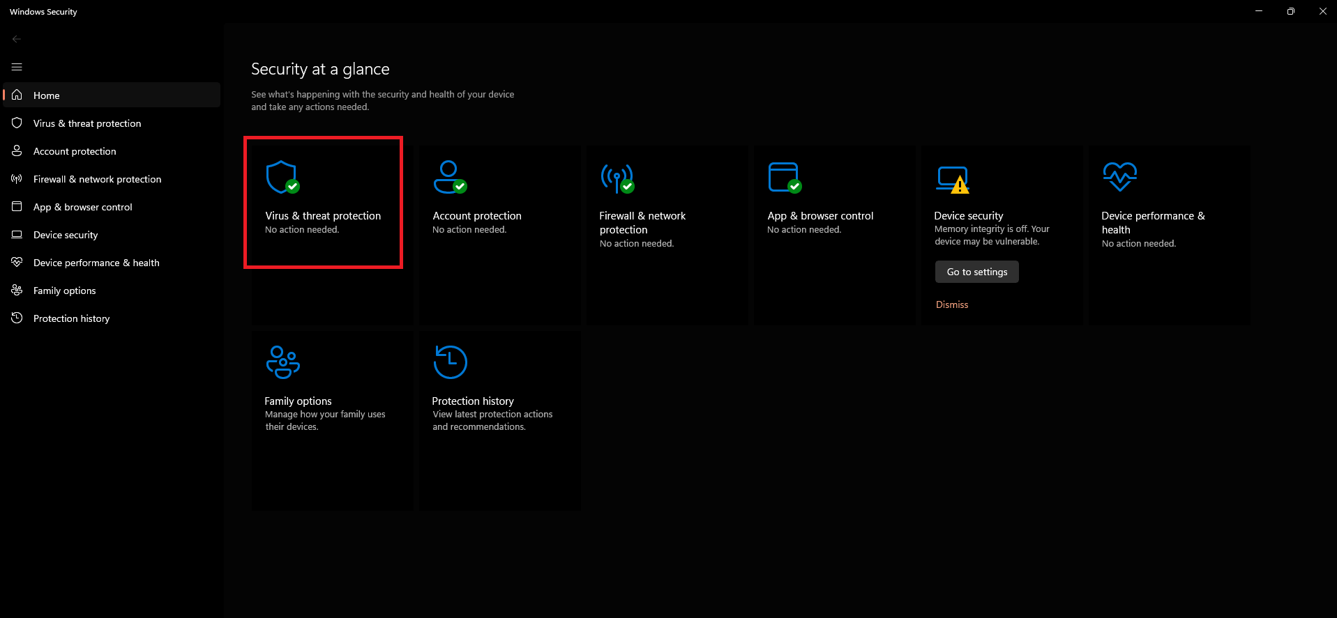 - Select the “Virus & threat protection” option.