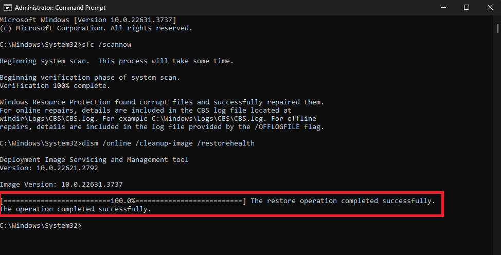 - If any corrupt files were found, you should receive the following message.
