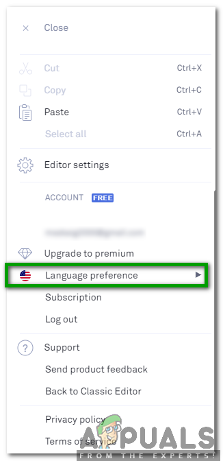 Go to Grammarly Website and Click on the Hamburger Menu Button to Launch a Menu - Now scroll down the menu and click on the Language Preference option.