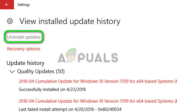 - Click “Uninstall updates” present at the very top of the screen.