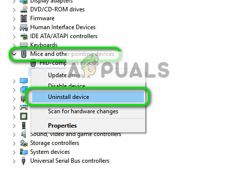 - Navigate to the device manager and expand “Human Interface Devices”. Now one by one remove all USB connected devices to your computer. You will notice that a lot of different devices will be removed.