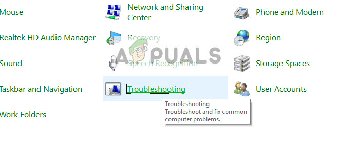 - Now select the option of Troubleshooting from the control panel.