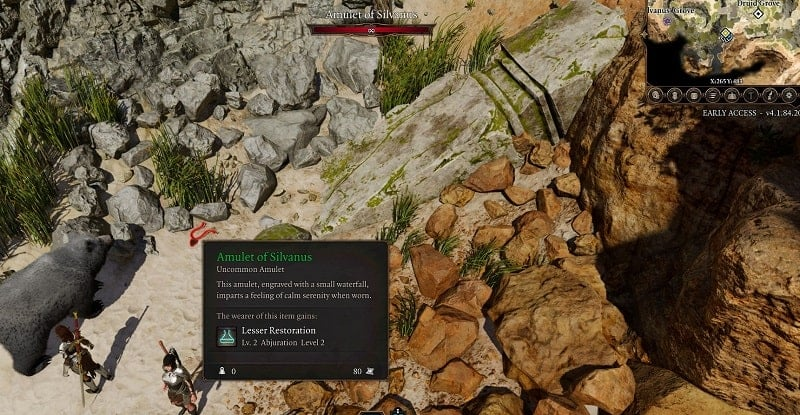 The Amulet of Silvanus is an uncommon amulet that allows you to cast Lesser Restoration, regardless of your class, once per Short Rest. The amulet can be found near Ormn the bear in the Druid’s Cove, hidden under a rock that needs to be moved. Its coordinates are X:262, Y:481.