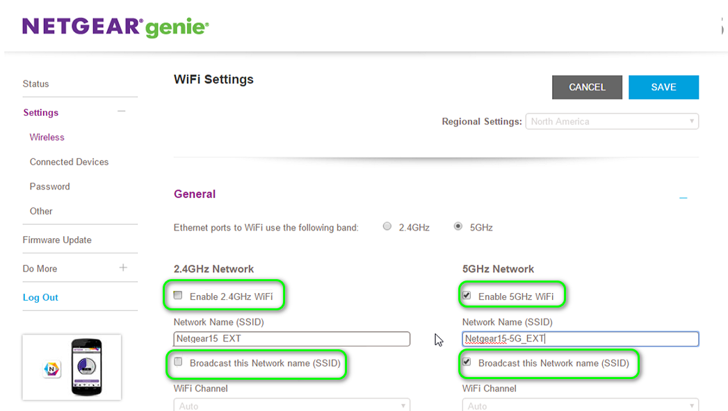 - Now navigate to the Wireless tab and disable 2.4 GHz by unchecking its selection box. Make sure the 5 GHz band is enabled.