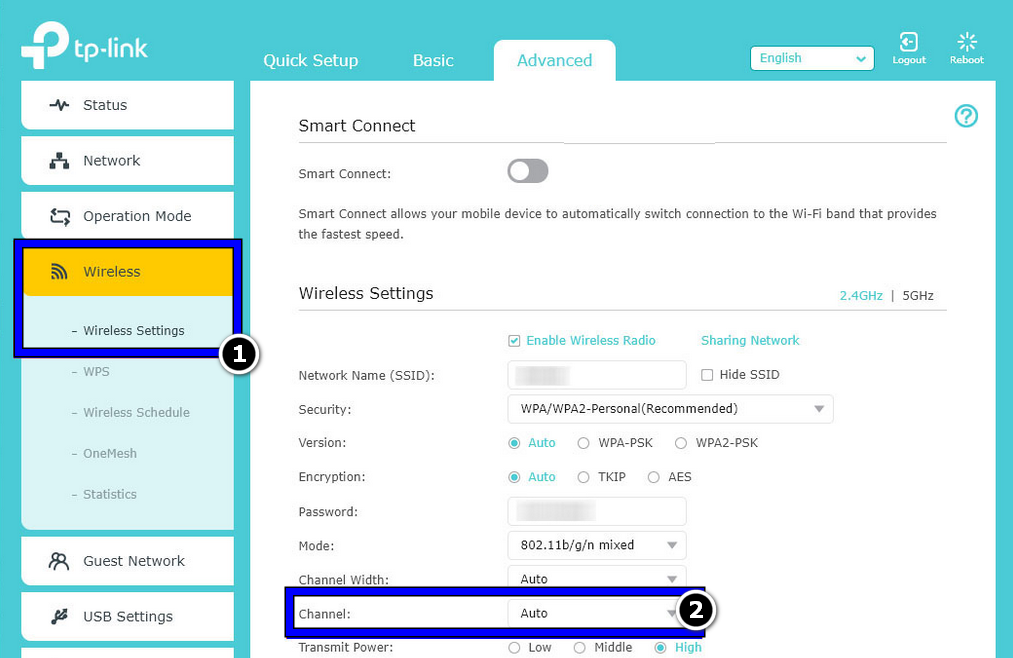 - Then expand the Wireless option and open the Channel dropdown.