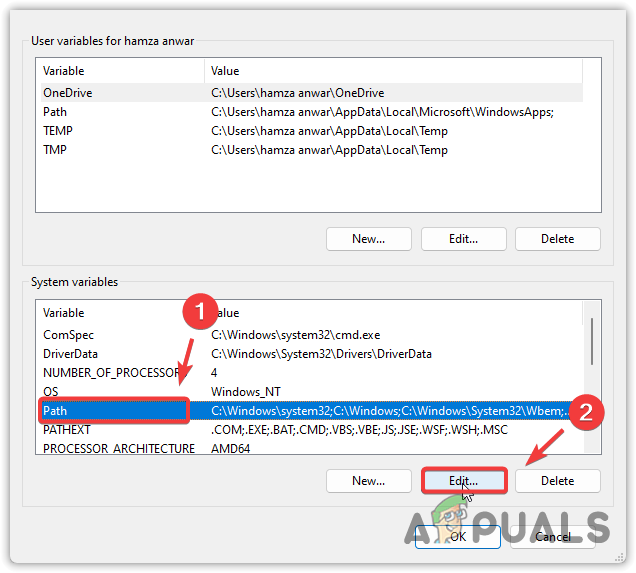 - Click Environment Variables and select Path from the System Variables. Then, click Edit.