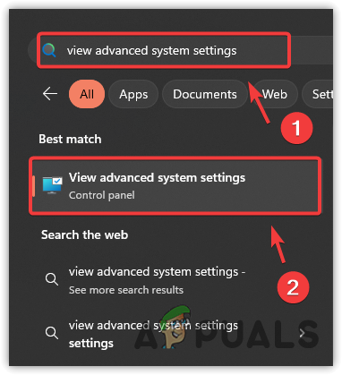- Click the Start Menu and type View Advanced System Settings.