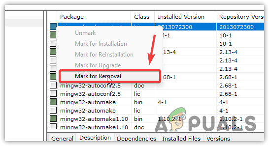 - Here, right-click all the Installed Packages one by one and select Mark For Removal.