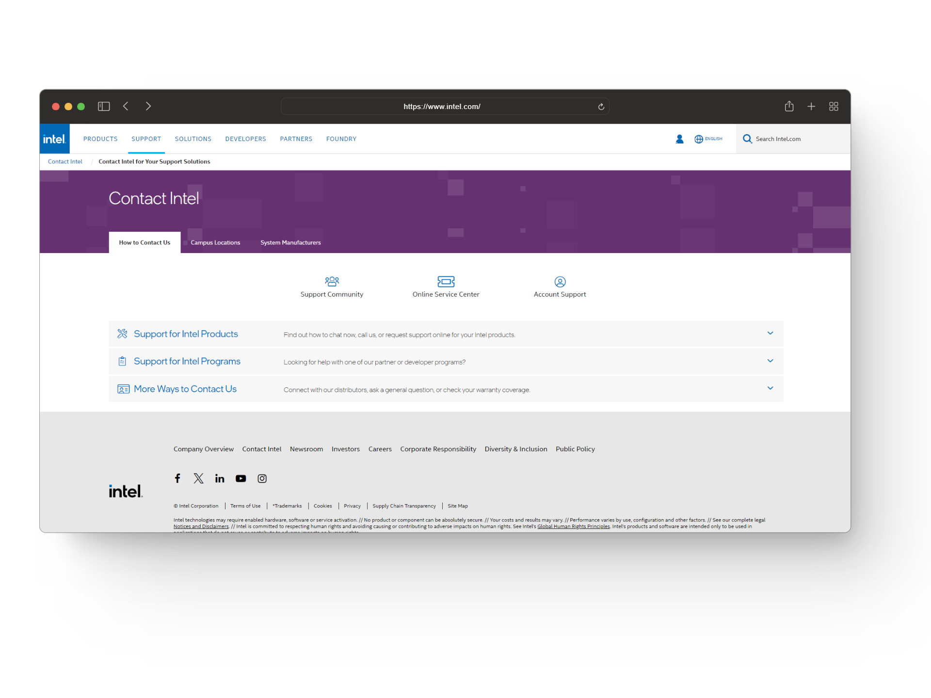 5. Contact Intel Support