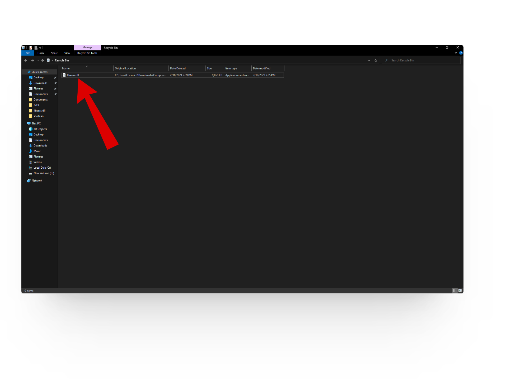 If you’ve accidentally deleted a DLL file, it might still be in the Recycle Bin. Open the Recycle Bin, find the deleted DLL file, and restore it to solve your problem.