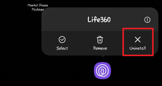 - Tap and hold the Life360 app icon, and select Uninstall.