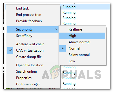 - Once you have done that, the priority of the program should be changed.