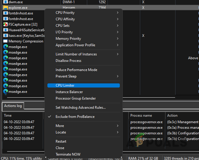 Changing Priority of Process using Process Lasso - To use the CPU Limiter, right click on a process and choose the CPU Limiter option.