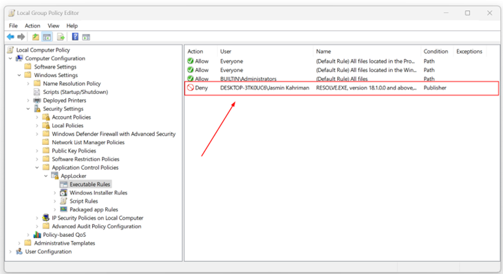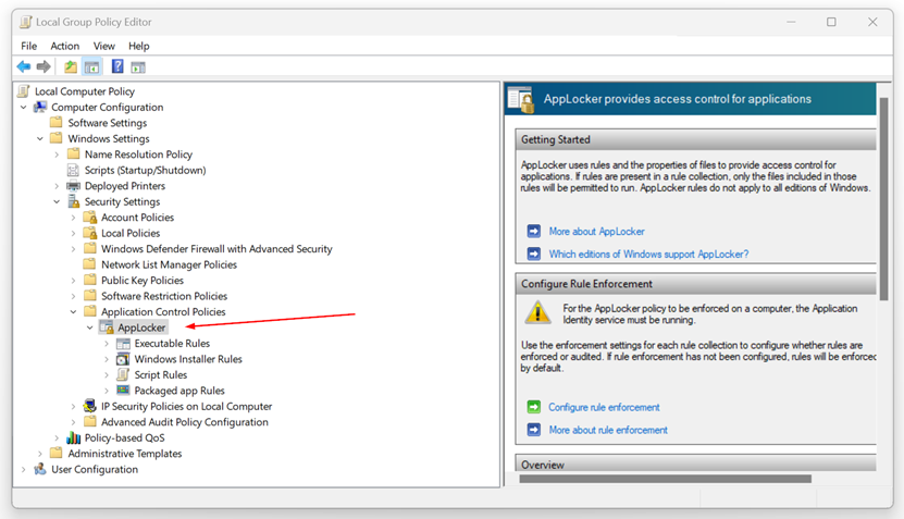 In order to use AppLocker and create deny rules, we will utilize the Local Group Policy Editor for local computers or the Group Policy Editor for domain-joined machines.